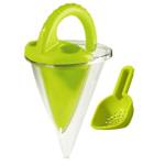 Make your beach day extraordinary with the HABA Spilling Funnel – the ultimate sand sculpting tool! This clever two-in-one sand toy mixes sand and water to help kids build, decorate, and design sandy creations with precision and pizazz. Fill one part of the tool with water, the other with sand and then watch the water and sand mix in the transparent container. The spilling funnel includes a sifting scoop to keep pebbles and debris out of the chamber to ensure smooth, uninterrupted play. • Mix & Pour Fun: Combines water and sand for unique effects • Easy to Use: Just fill, pour, and decorate and kids can watch the mixing magic happen • Sand Sifter Included: Keeps debris out for smooth pouring • Designed to Last: Sturdy, BPA- and phthalate-free plastic • Easy Cleanup: Pops apart for quick washing • Portable Play : Ideal for beach, sandbox, or backyard • Stem-Friendly Fun: Encourages hands-on exploration and creativity • Includes: 1 transparent green sand funnel with two separate pieces and connected handle and with included sand sifter scoop. ToyDirectory Product ID#: 57345 (added 8/22/2025) .