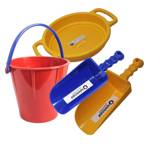 These durable sand toys will be in your beach bag for years and years of creative sand play! Bundled together, this set has everything your child needs to make the beach extra fun and engaging. The Spielstabil Sand Toys Bundle features a large sand bucket, two large sand scoops and a big sand sieve, in assorted colors. • Spielstabil products are made from food-grade ABS plastic and are PVC-free, Phthlate-free and BPA-Free. • These beach toys are virtually indestructible with normal kids play. • Made in Germany. • Shovel measures approximately 7 1/4"L x 2 3/4" W. Sieve measures 7" wide. Bucket measures approximately 6.5" tall x 7.25" in diameter and holds approximately 2.5 liters. • Suitable for ages 30 months and up. ToyDirectory Product ID#: 57351 (added 8/22/2025) .