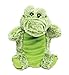 Designed for interactive play, this green plush alligator has brown button eyes and a short muzzle. It can be worn on either hand and is suitable for puppet shows, storytelling, or educational activities. The puppet encourages imaginative play and can be used for family bonding, classroom activities, or as a comforting companion for children.