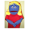 These Rod Puppets are 16 inches tall and made with Velour Tricot and quilted cotton for the bodies. The polyfill stuffing is used for hands, head, and arms. It comes with easy moving mouth with hand strap and acrylic rods that attach to the wrist with velcro. All of the puppets meet U.S. & European safety requirements ToyDirectory Product ID#: 1456 .