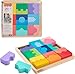 This classic building block set introduces young children to basic architectural concepts through simple shapes and solid colors. The Maple Blocks set includes 50 wooden pieces in various forms such as rectangles, cylinders, triangles, and arches, available in blue, green, red, yellow, and natural wood finishes. Designed for children aged 12 months and older, the blocks support fine motor skill development. The set comes with a durable cotton storage bag for easy organization and portability. Constructed from high-quality wood with non-toxic finishes, these blocks are built to last. ToyDirectory Product ID#: 48547 (added 6/30/2025) . This wooden jigsaw puzzle features 19 colorful interlocking shape blocks designed for stacking and sorting. The set includes a tray with printed guidelines to help children match each shape to its corresponding slot. The puzzle is constructed from FSC-certified wood (FSC C130462, 2022), sourced from responsibly managed forests. Suitable for ages 18 months and up, it supports fine motor development, problem-solving, and creative thinking through Montessori-inspired play. The simple, engaging design encourages independent exploration for toddlers and preschoolers. ToyDirectory Product ID#: 49001 (added 6/30/2025) .